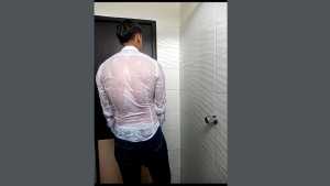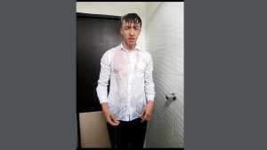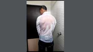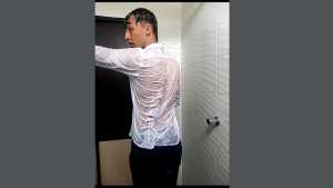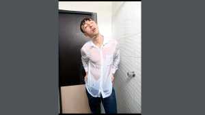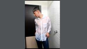 Luke takes a fantastic shower again today. His white shirt is super sheer when it's wet, showing off his gorgeous body, and his soaking wet jeans are a feast for our eyes. Gorgeous and dripping wet as always. Sexy!
