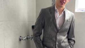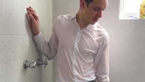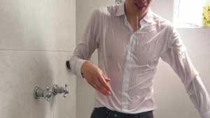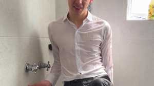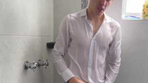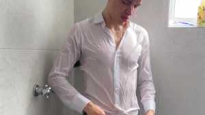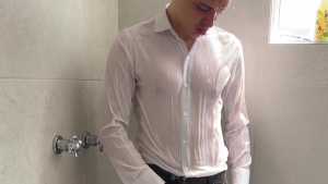 LiamB is dressed in his elegant suit today and decides to take a shower fully-clothed, including his elegant shoes. He looks amazing as he gets wetter and wetter, until he's completely soaked. His white shirt is super sexy and sheer, and he'll be absolutely sexy after the striptease, with his amazing boxers completely soaked!