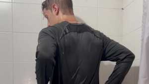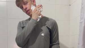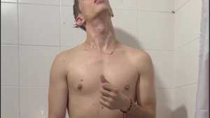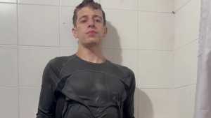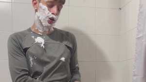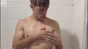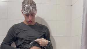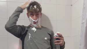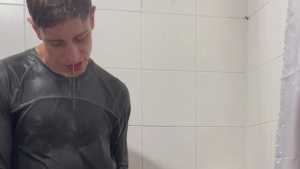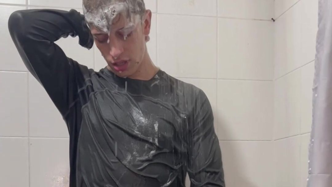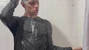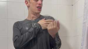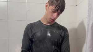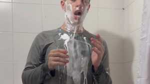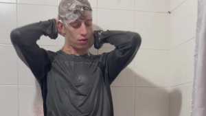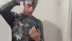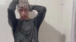 Today Ostin feels like getting dirty and decides to get dirty with shaving cream. His hair and face are covered in foam, and soon his t-shirt is covered in it. He decides to clean himself in the shower, but immediately afterward he thinks about getting dirty again with a super shampoo. Then he begins a long shower fully-clothed, really sexy and super wet!