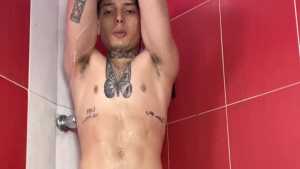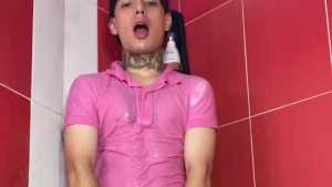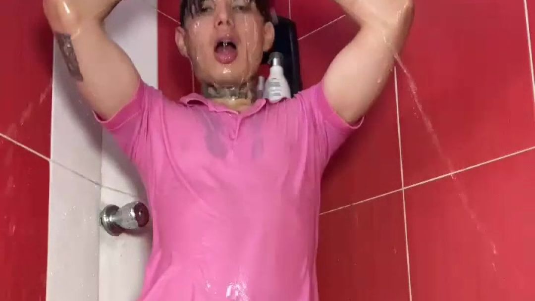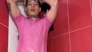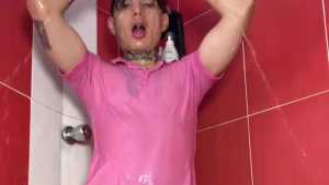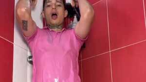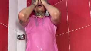 Thomas treats us to a fantastic shower in his pink polo shirt and brown pants. It's a super shower where he's immediately soaked, and the wet look on his polo shirt is extraordinary. But he doesn't stop at just the shower; he'll give us a breathtaking, super sexy finale with a big surprise!