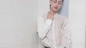 Zaid takes a sensational shower wearing dress pants and a gorgeous white shirt. He starts slowly and sensually, and his shirt quickly becomes see-through and soaking wet. His pants begin to soak, and after a few minutes, he's completely soaked. Finally, it's incredibly sexy when he takes off his clothes and reveals his soaking wet red boxers!